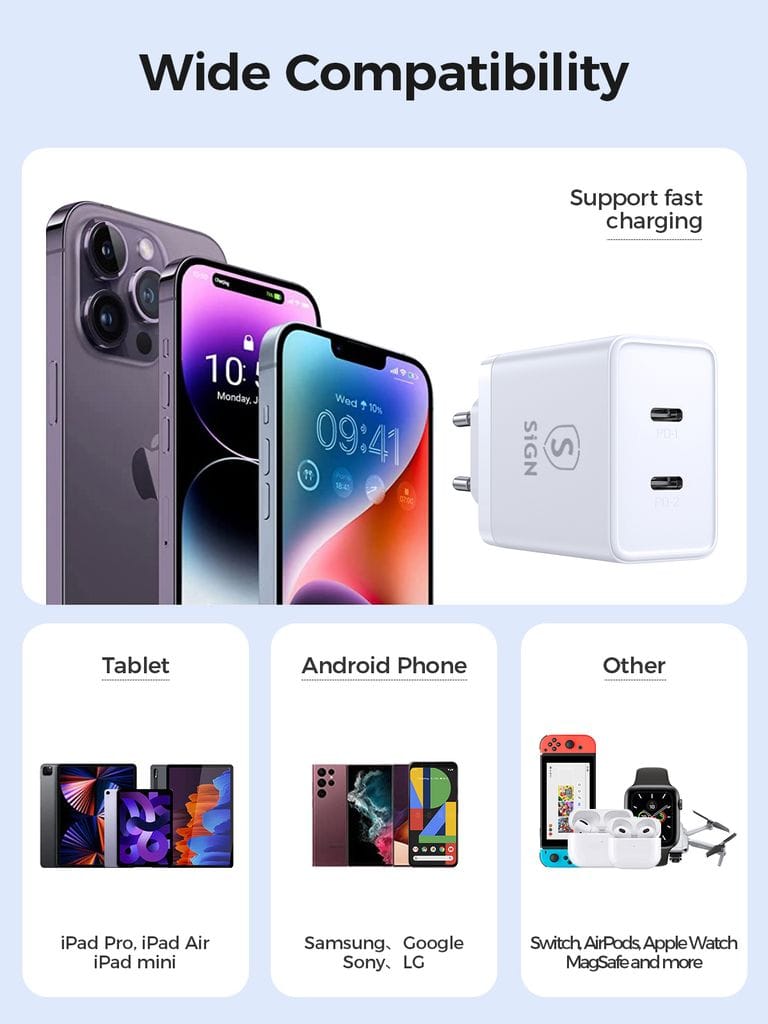 När du väljer en laddare från SiGN kan du ladda säkert med vetskapen om att laddaren är CE-märkt. Med denna väggladdare behöver du inte kompromissa, dina enheter laddar både snabbt och säkert!