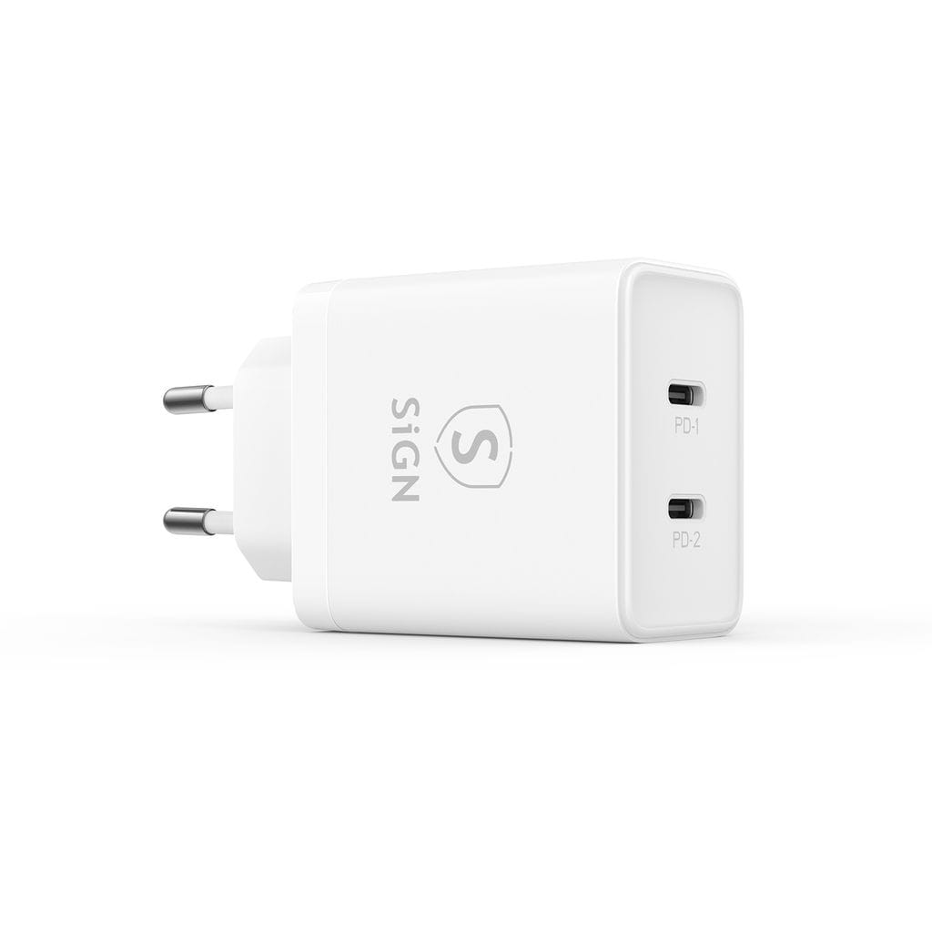 SiGN Dual USB-C PD Laddare 40W – Vit