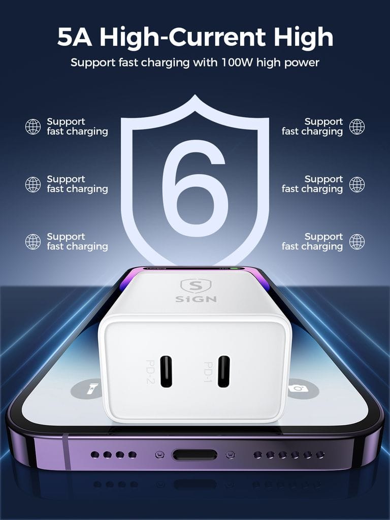 Kraftfull och kompakt väggladdare från SiGN med dubbla USB-C uttag som laddar upp dina enheter snabbt och effektivt. Stöd för Power Delivery och Quick Charge 3.0 snabbladdning som du kan praktiskt ladda två enheter samtidigt.