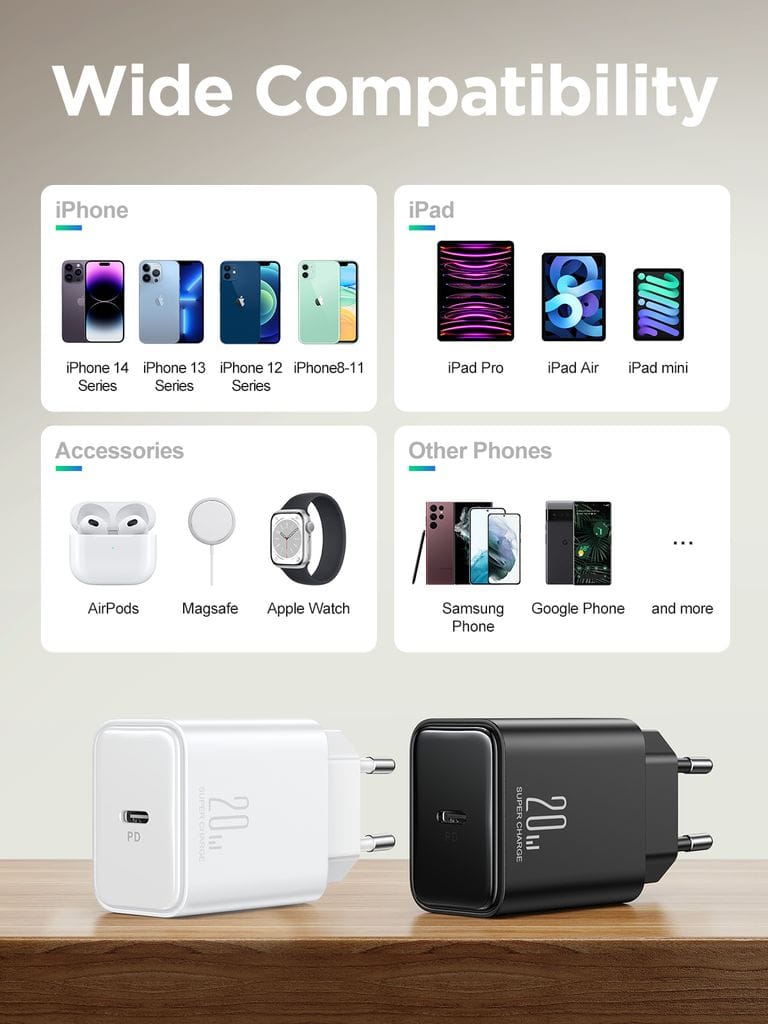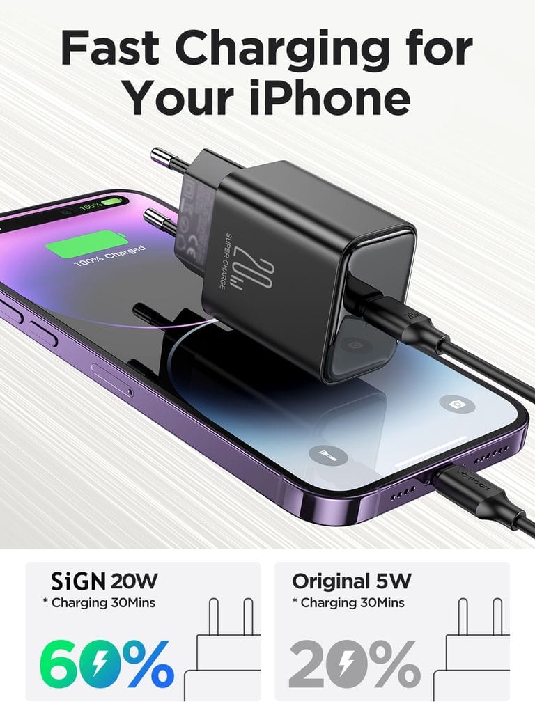 Snabbladda din iPhone eller Samsung Galaxt smartphone med denna USB-C PD snabbladdare från 0 % till 50 % – på bara 30 minuter! Det enda du behöver förutom denna väggladdare är en USB-C till Lightning eller USB-C till USB-C-kabel! Laddaren är självklart CE-märkt!